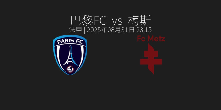 在行将于2025年8月31日23:15进行的法国足球甲级联赛中,巴黎FC将在主场迎战梅斯。这场比赛引东谈主隆重,主要因为两队的近期景色与交游精神齐颇具看点。巴黎FC当作升班马,濒临老牌球队梅斯,两边的较量将是实力与斗志的碰撞。