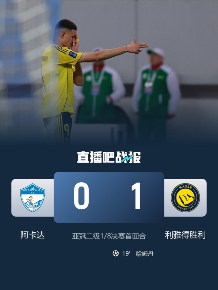 下半场补时4分钟,阿卡达0-1利雅得成效。
